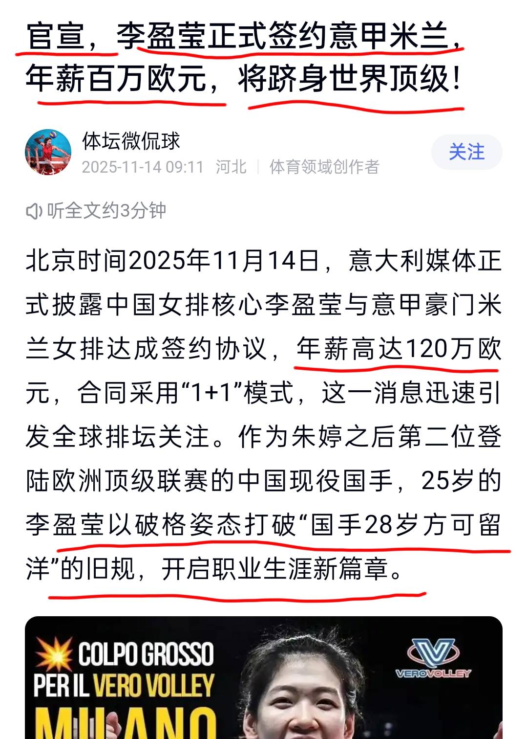 第一、意甲联赛每个签约队员的薪酬是保密的。造谣所谓120万欧、100万欧无形给米兰队会带来相当大的压力。试想,给李盈莹120万欧,那给米兰队队长埃格努多少呢?如果埃格努只拿到100万欧,那么埃格努会怎么想呢?