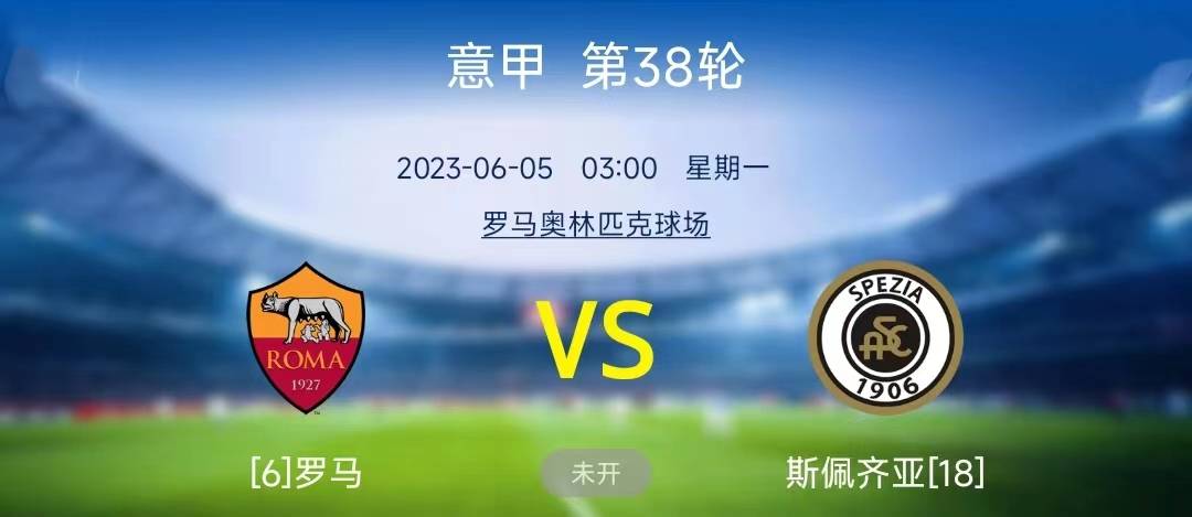 意甲直播,意甲赛程,意甲积分榜,尤文图斯直播,意甲比分预测/面向中文球迷的意甲资讯平台,涵盖2025赛季完整赛程、免费高清直播入口、积分榜更新与竞彩波胆预测,聚焦尤文、国米、米兰三大豪门赛事。北京时间2023年6月5日03:00,意甲 第38轮,罗马将在主场对阵斯佩齐亚。